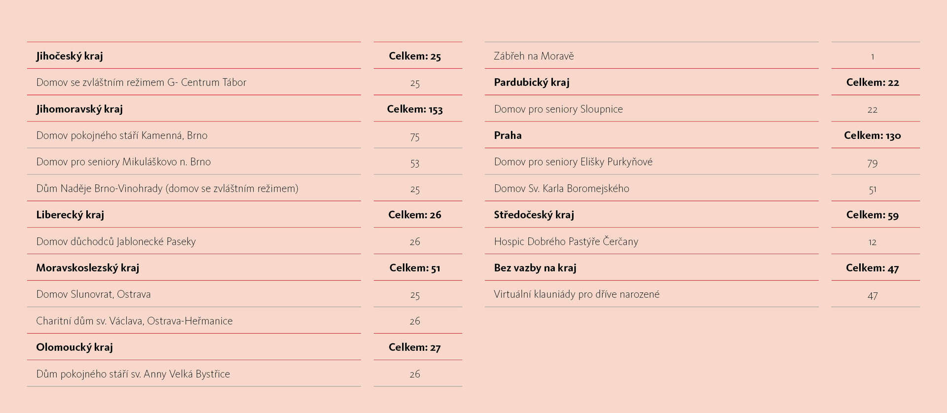 Návštěv v roce 2025Přehled návštěv v roce 2025 po krajích