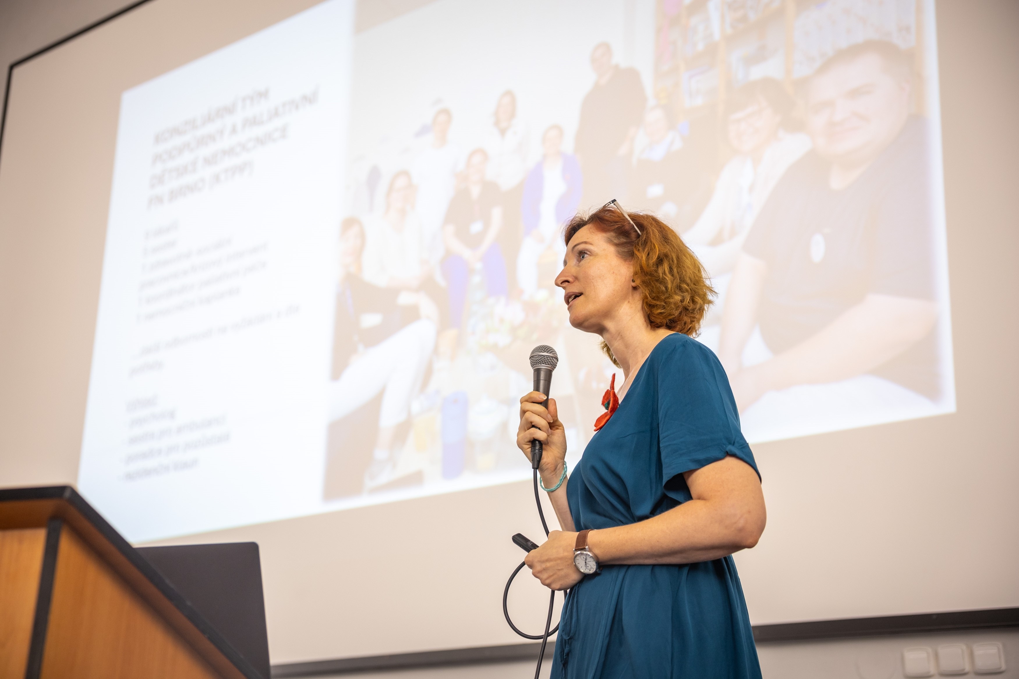 - Poté jsme mohli přivítat důležitého hosta - Mgr. Olgu Marii Krčmářovou, koordinátorku paliativní péče v Dětské nemocnici FN Brno. Pověděla nám, jak funguje tým paliativní péče v Dětské nemocnici FN Brno, jak vznikal, jaké můžou být konkrétní situace a potřeby rodin s vážně nemocnými dětmi i kde vnímá přínos spolupráce s organizací Zdravotní klaun. Více o paliativních programech si můžete přečíst zde.