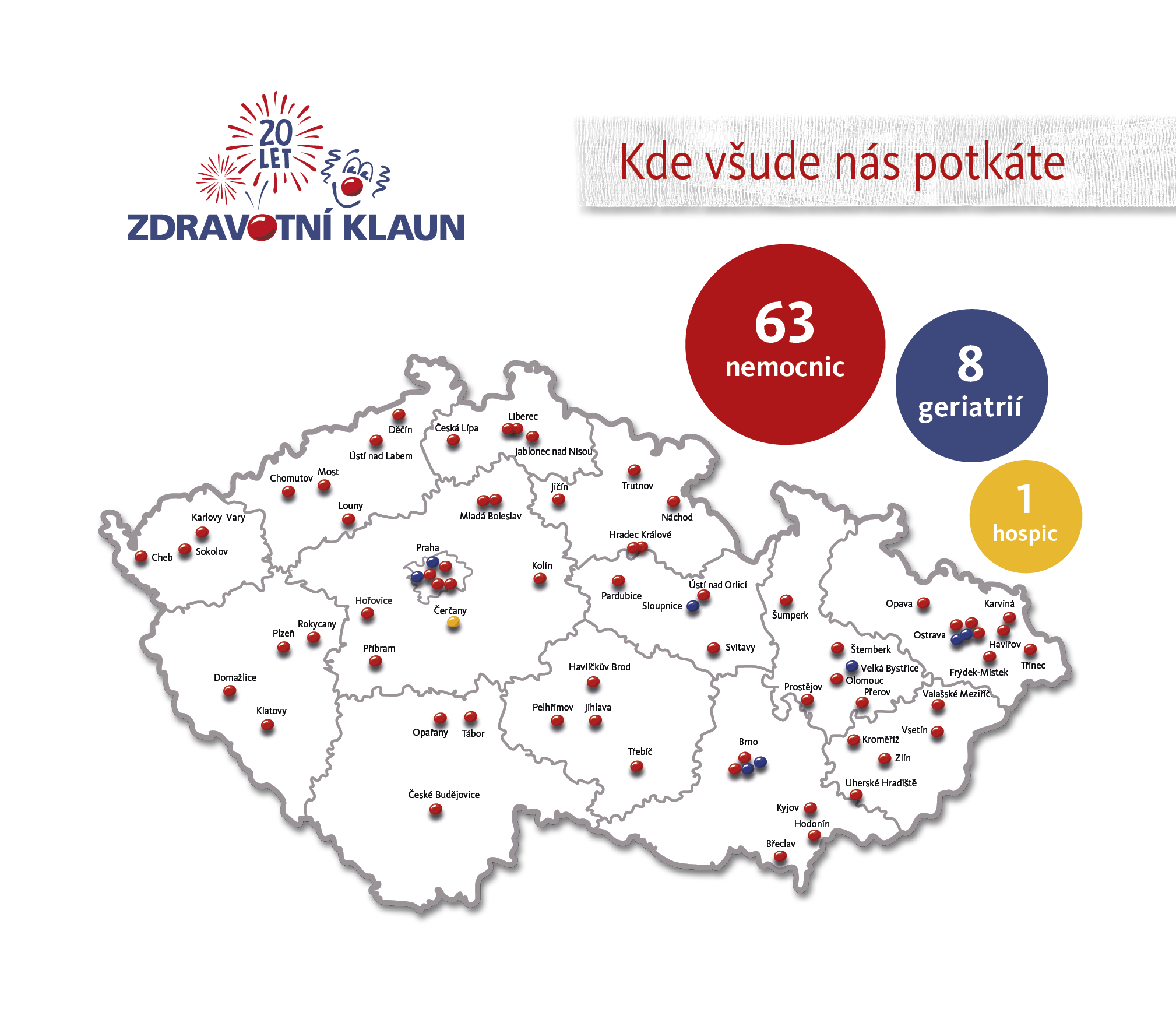 Máme ohromnou radost, že to jsou právě obecní a městské úřady, které rozšiřují řady našich podporovatelů. Podívejte se, na mapku, kam všude jsme nastrčili své červené nosy a rozdáváme radost nemocným dětem, personálu i rodičům. Na shledanou se Zdravotními klauny třeba ve vaší nemocnici!