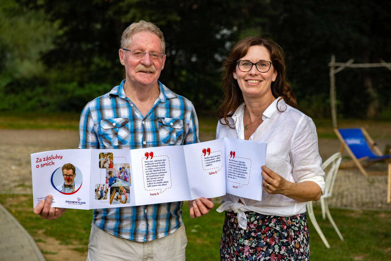 Celý víkend se nesl v duchu přátelských setkání, sdílení zkušeností a učení nových dovedností. Předávali se dary v podobě certifikátů, dortů nebo i leporela. A samozřejmě nemohl chybět ani zakladatel Zdravotního klauna Gary Edwards, kterého se nám podařilo dojmout při převzetí jeho výtisku leporela, které jsme předali na Hrad na podporu jeho nominace na státní vyznamenání.