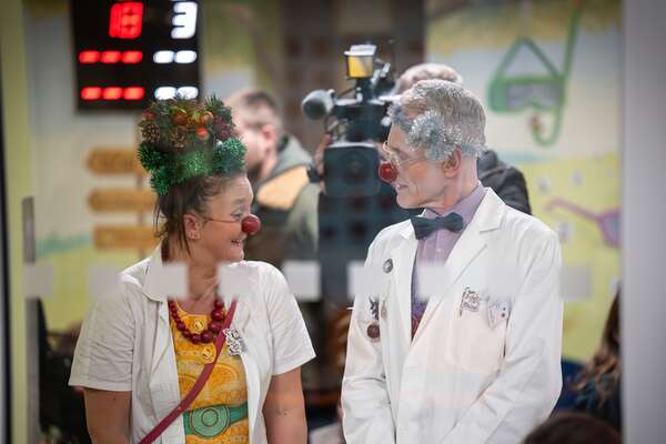 Reportáž z vánoční klauniády ve FN Motol očima televizní kamery. (TV Nova, 22.12. 2025)