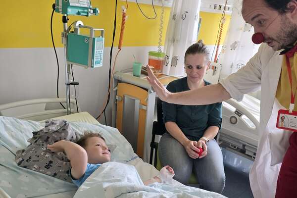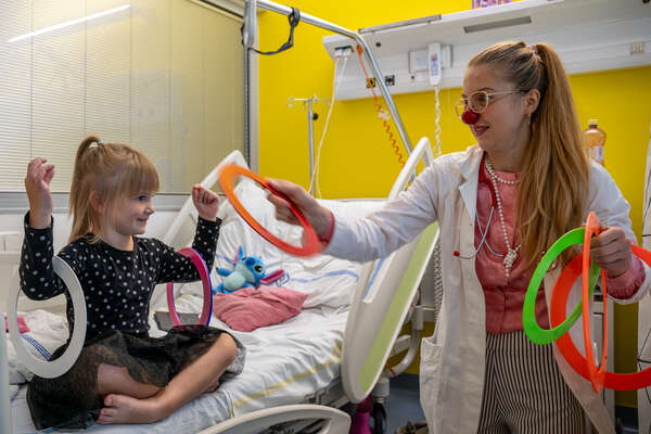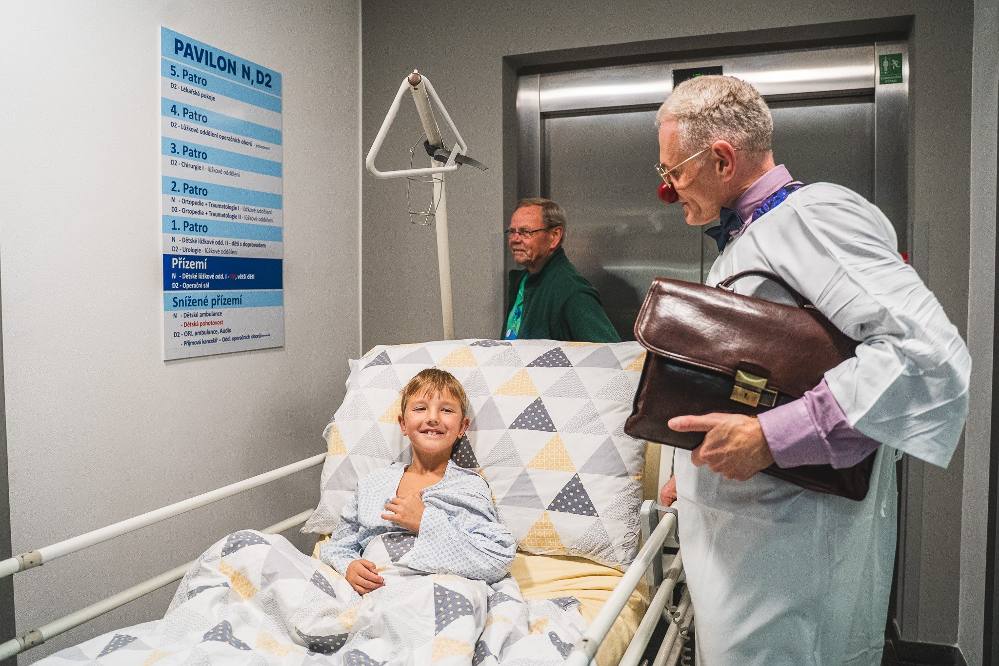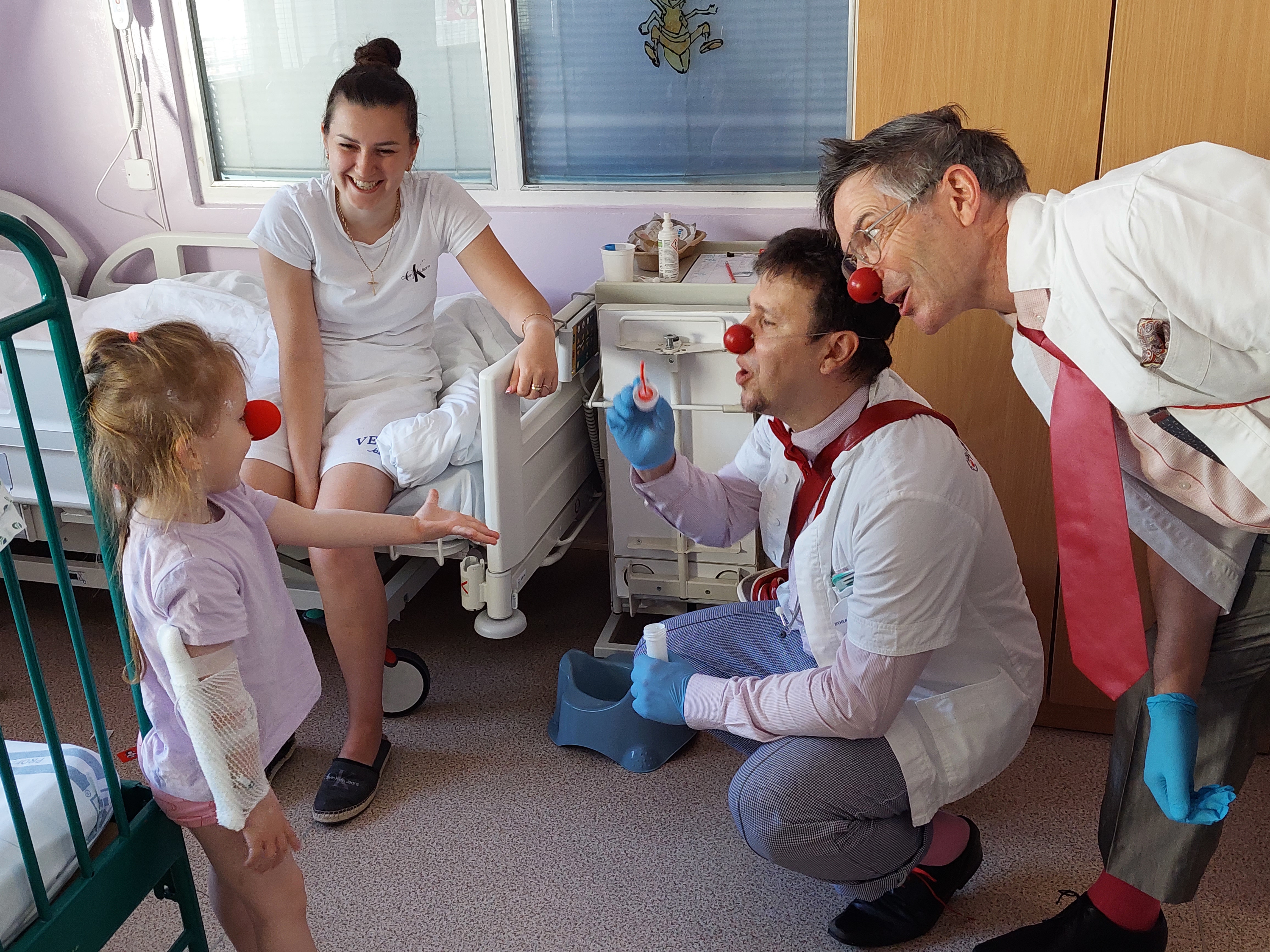Dětská lůžková oddělení zůstávají stále vlajkovou lodí naší práce. Je jich už více než tři sta. Proto nejvíce úsměvů rozdáváme právě tady. Na nemocničních pokojích, do kterých s každou klaunskou vizitou vstupuje radost a úleva. Rodí se tu úsměvy, které nabourávají šeď a nudu a přetvářejí smutné vzpomínky na ty smíchuplné.